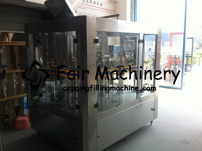 The machine is used for producing drinking water in PET bottle, such as pure water, mineral water,natural water etc.Adopting hanging-neck technology,it can transfer the plastic bottle more stably and faster. One machine can finish washing bottle, filling and capping three processes, sanitary and high-efficiency,High-quality filling valve guarantee the filling level precision.
