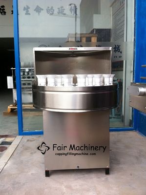 When working, the bottles to be rinsed are manually placed in the bottle basket on the turntable, and gradually enter the spraying area with the slow rotation of the turntable. This machine uses high-pressure water for internal and external washing, which can effectively clean all kinds of dirt on the inner and outer walls of the bottle. After a period of spraying, the bottle gradually turns out of the spraying area. The bottle is still manually removed and placed on the bottle conveyor to enter the next process.